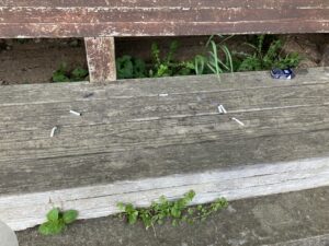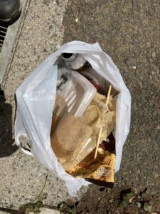 タバコの吸殻が多かった。 弁当の空き箱が捨てられていた。 コーヒー缶、ペットボトルが投げ捨てられていた。 全て回収しました。
