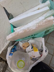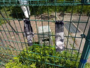 タバコの吸殻や中身が入ったペットボトルが多く散乱していました。 板状の発泡スチロールの看板を回収しました。 桜広場手前に蔓に絡まった木がありました。 皿倉平にアー厶カバーの忘れ物がありました。取りに来られるかもしれないので、そのままにしています。