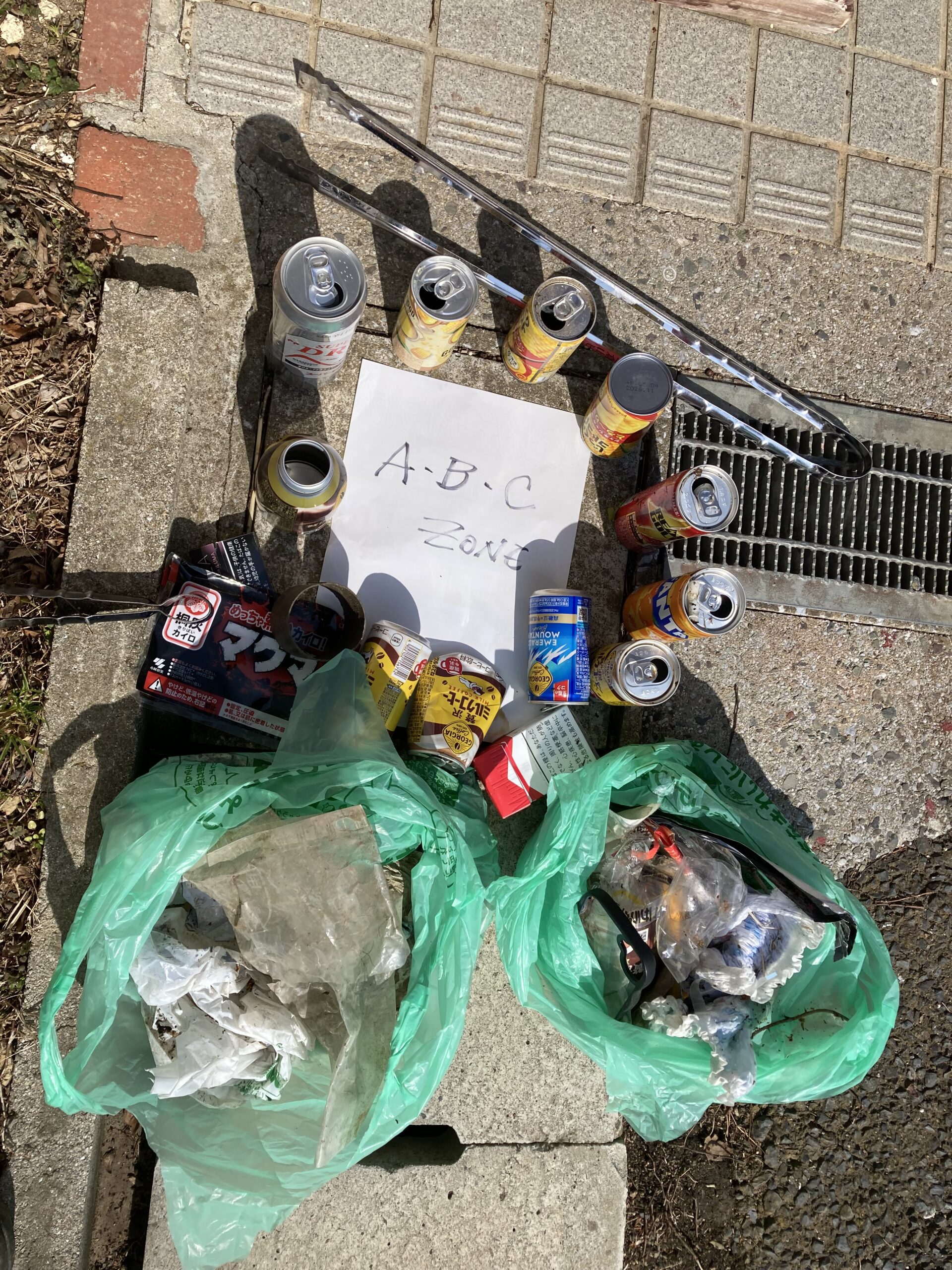 空き缶、ペットボトル、紙類は A、Bゾーンと皿倉平に集中。この辺りはタバコの吸い殻も多く、火災も心配され、喫煙モラル改善が必要。権現山は登山者中心の入山で、ゴミはほとんどない。