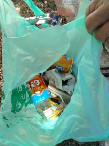 タバコの吸い殻が舗装路では多く見られた。空き缶、ペットボトル等が山頂付近に特に見られた。
