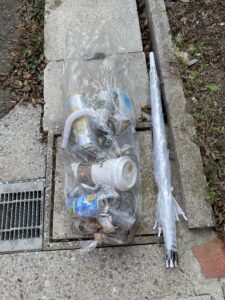 空き缶及びペットボトル 傘等が落ちていました。
